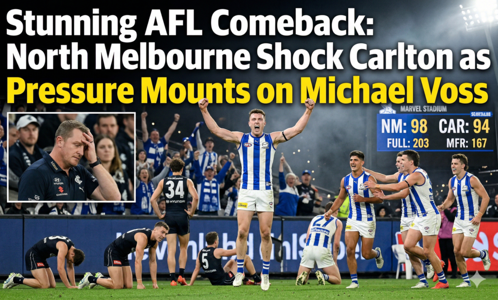 Stunning AFL Comeback: The clash between the North Melbourne Kangaroos and the Carlton Blues delivered one of the most dramatic moments of the AFL season. What looked like a routine victory for Carlton quickly turned into a nightmare as North Melbourne stormed back in the final quarter to secure a memorable comeback win.